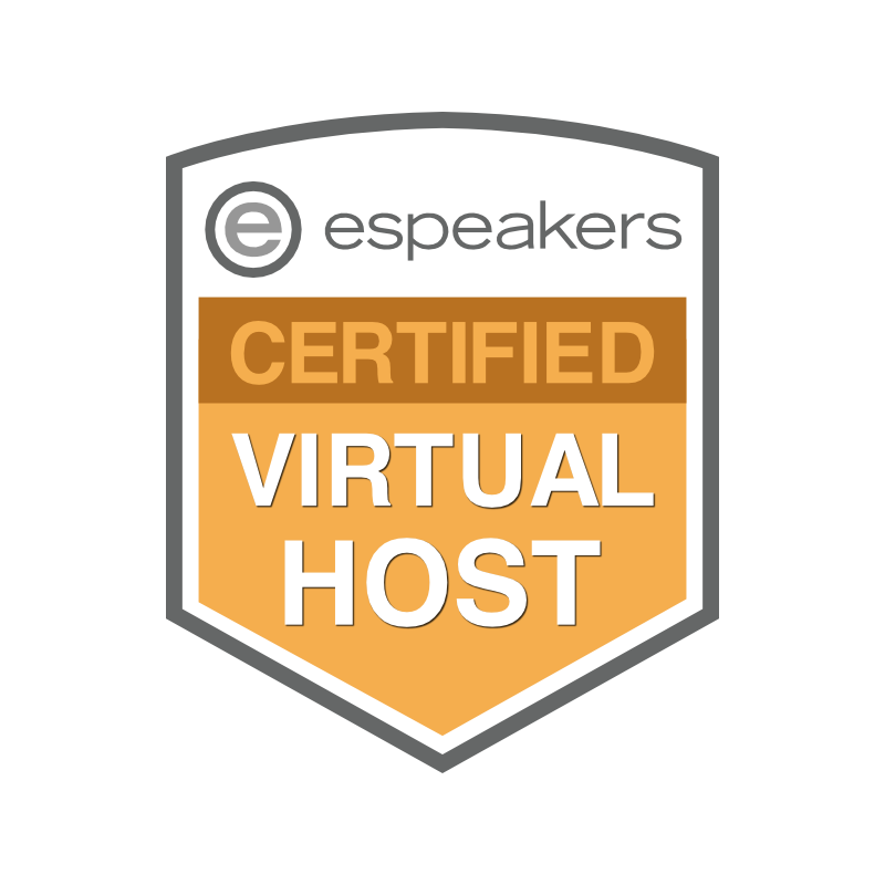 The Certified Virtual Host is made up of a live, instructor-led training session (over Zoom, of course!), followed by an assessment. On completion, you'll receive the Certified Virtual Host badge to display on your website, eSpeakers profile, email, business card, etc. The assessment consists of you recording an actual session where you are the virtual host, and demonstrate the principles taught. You'll send the recording to your instructor as your assessment. On the instructor's approval, your badge will be issued to you.