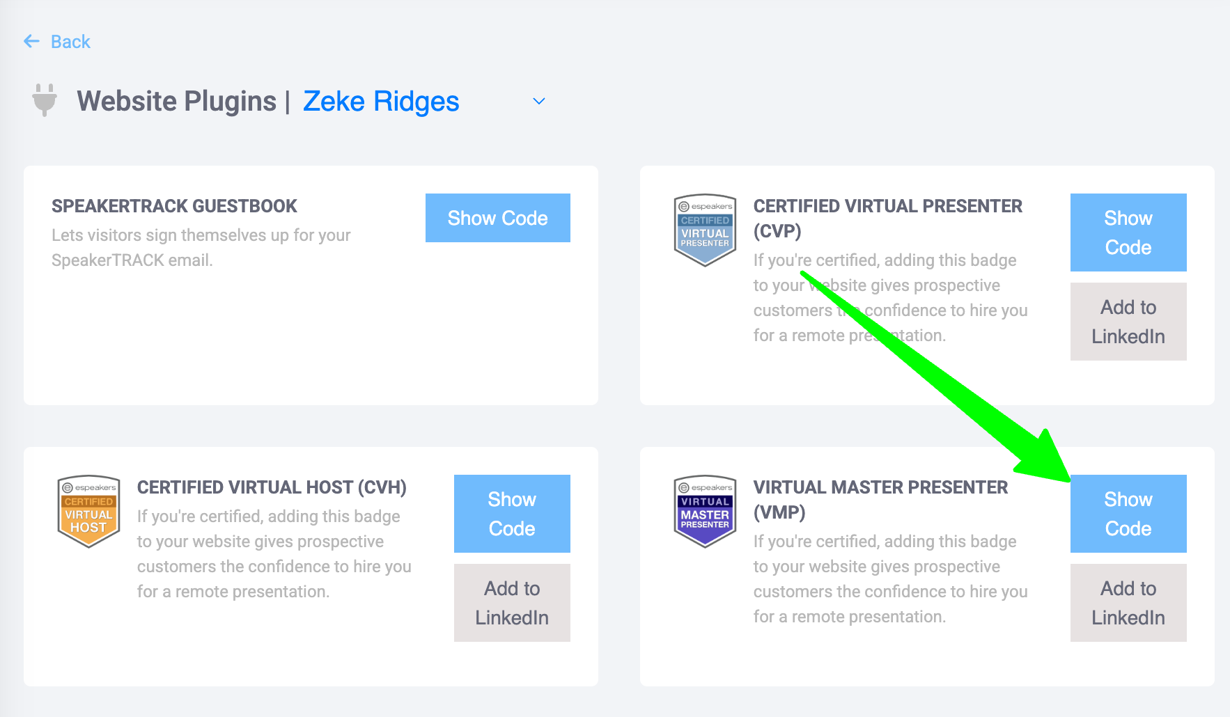 - Click ADD TO LINKEDIN next to VIRTUAL MASTER PRESENTER